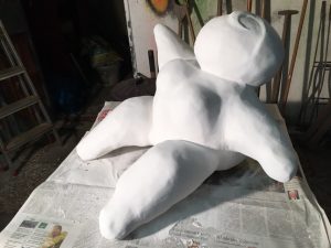 Diese „Nana“ wartet schon seit Jahren darauf, Farbe zu bekommen. Aber zuerst muss die Oberfläche glatt geschmirgelt werden!